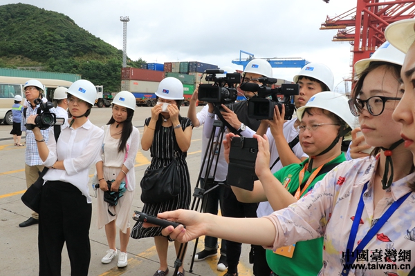 兩岸記者參觀寧波舟山港穿山港區。(中國臺灣網 李奕均 攝)