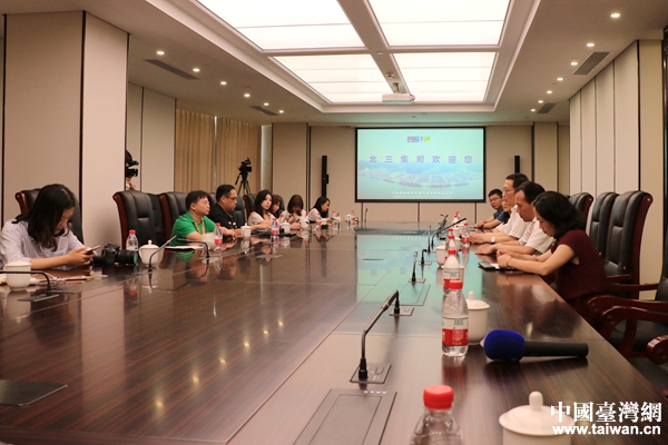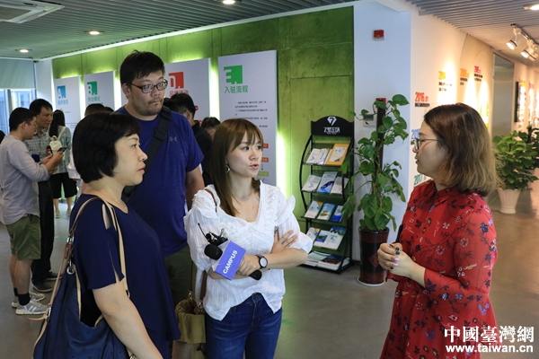 青創基地工作人員為兩岸記者介紹園區概況。(中國臺灣網 李奕均 攝)