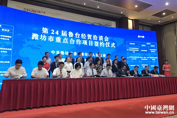 第24屆魯臺經貿洽談會濰坊市重點合作項目簽約儀式現場。(中國臺灣網 趙苗青 攝)