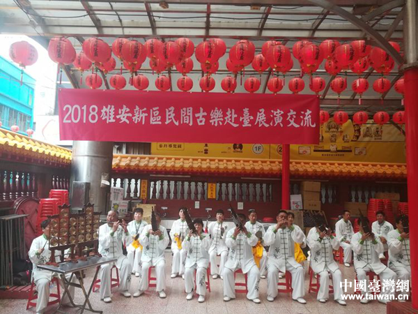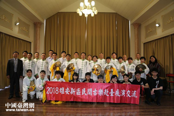 中國臺灣網5月17日保定訊 日前,由雄安新區25位民間古樂藝人組成的“雄安新區民間古樂”文化交流團走進臺灣,在臺北、桃園、新竹、新北等地舉辦了5場展演出,受到當地民眾的熱烈歡迎。展示了雄安新區非遺文化傳承和保護成果,宣傳了國家京津冀一體化發展戰略和雄安新區建設,通過交流經驗、切磋技藝、增進友誼,搭建了兩岸古樂文化交流的橋梁。