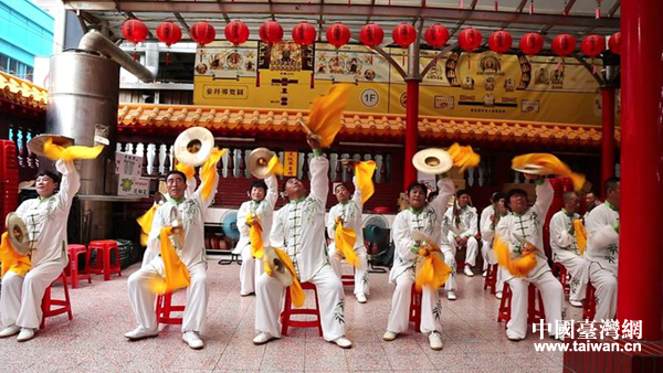 雄安新區民間古樂交流團亮相臺北受關注(城隍廟演出)。(圖片來源:保定市臺辦)