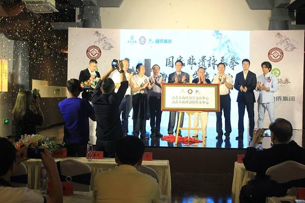 8月28日上午,國(guó)家非遺詠春拳海峽兩岸交流中心在福州成立并舉行揭牌儀式。(圖片來源:福建省臺(tái)辦)