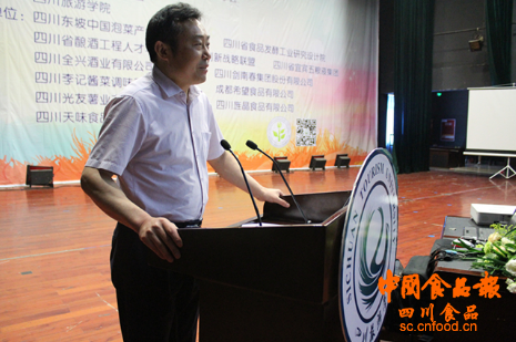 陳善蜀先生在2016年四川省食品營養(yǎng)產(chǎn)業(yè)青年人才產(chǎn)學(xué)研創(chuàng)新設(shè)計(jì)大賽上講話。