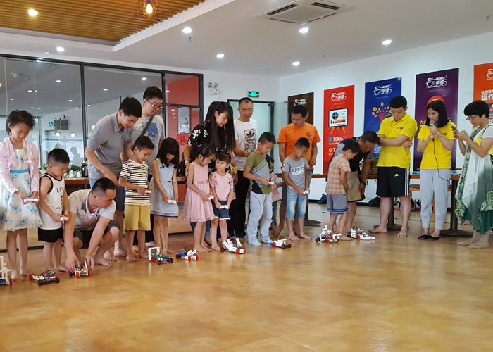 6月5日下午,一品創客集孵化美基地與小玩伴機器人創客空間聯合舉行了“親子科技周·親子游樂大比拼”活動。雖然天公不作美,下起了大雨,但是依舊擋不住家長和小朋友們的熱情,現場人氣爆棚。大、小朋友在咖啡廳進行了一場場科技大比拼。