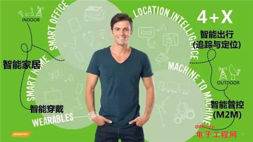物聯(lián)網(wǎng)使用者繽紛多樣,聯(lián)發(fā)科技將環(huán)繞使用者串起物聯(lián)網(wǎng)價值鏈。我們將集中于四大物聯(lián)網(wǎng)領(lǐng)域:智能穿戴、智能家居、智能出行(追蹤與定位)和智能管控(M2M),同時保持向外拓展的彈性,尋求垂直細分市場和新興領(lǐng)域的市場機會。這就是我們物聯(lián)網(wǎng)發(fā)展的又一大策略:4+X策略。