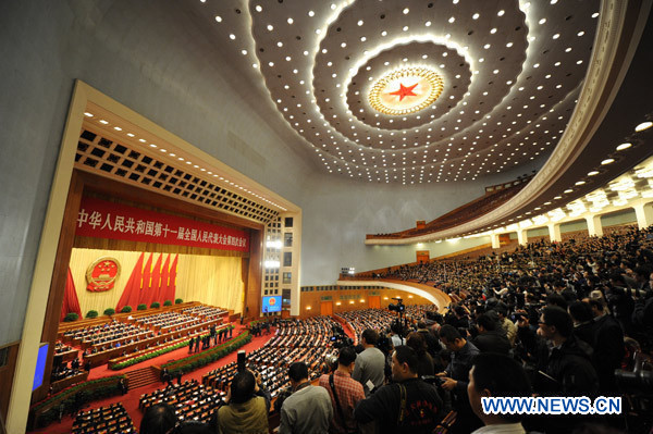The Fourth Session of the 11th National People's Congress holds its closing meeting at the Great Hall of the People in Beijing, China, March 14, 2011. (Xinhua/Xie Huanchi)