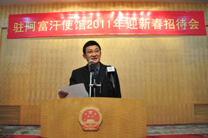 2011年1月21日晚,中國駐阿富汗使館內張燈結彩、歡樂喜慶。駐阿富汗大使鄭清典為全體在阿華人華僑和中資機構代表舉辦盛大的2011年春節招待會。中冶江銅、中鐵十四局、中興通訊、華為技術等中資機構代表、新華社、中央電視臺記者、旅阿華人華僑及使館全體人員歡聚一堂,喜迎農歷兔年新春。