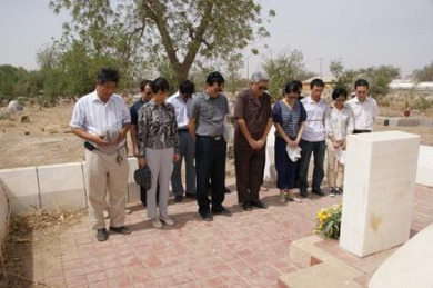 2010年4月5日清明節(jié),駐乍得使館參贊陳光國、經(jīng)商參贊黃明元等以及中國援乍醫(yī)療隊全體人員一同前往首都恩賈梅納一區(qū)公墓,為在援乍工作期間犧牲的醫(yī)療隊隊員李洪凌醫(yī)生掃墓,并敬獻了花圈和花束。