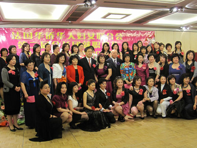 2010年3月20日晚,巴黎協和拉斐特酒店宴會大廳里花團錦簇,高朋滿座,喜氣洋洋。剛剛結束國內述職回到巴黎的孔泉大使和夫人王鶯鶯冒雨前來,同旅法僑界400多名婦女代表一起出席法國華僑華人婦女聯合會第二屆會長團就職典禮暨慶!叭恕眿D女節100周年活動。使館許建工參贊、何淑琴參贊和部分女外交官出席了當晚的活動。
