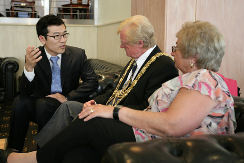 英國華夏文化協會會長貝學賢率副秘書長兼教育部部長李鵬,新聞部副部長張博等一行出席了會見。貝會長對新任市長Councillor Geoff Wells表示了衷心的祝賀,他說道,“希望英國新任政府繼續從戰略高度和長遠角度把握兩國關系,并真心的祝愿中英兩國在未來的合作發展上道路平順。同時也愿意盡自己最大的努力與英國各級政府及民間各大社團共同努力,進一步深化各領域的務實合作。”