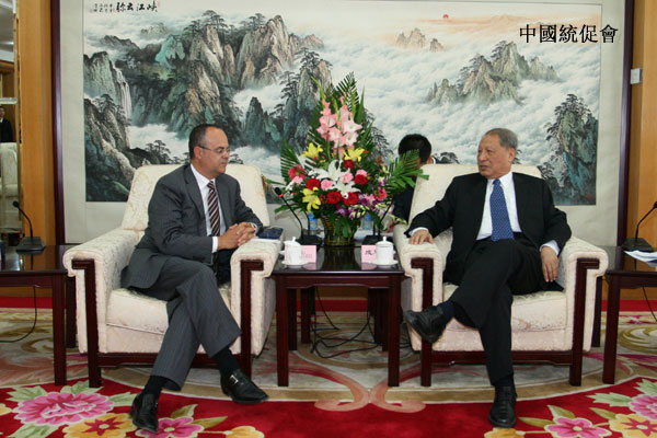 8月23日,第九、十屆全國人大常委會副委員長、中國和平統一促進會名譽會長成思危在京會見了由葡萄牙中國和平統一促進會會長、葡萄牙國會議員及企業界友好人士組成的訪問團一行。中國和平統一促進會執行副秘書長李路、副秘書長傅鐵生及部分理事參加了會見。
