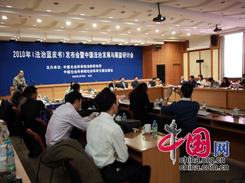 中國社會科學院于2月25日上午9:00在中國社科院第一學術報告廳舉行“2010年《法治藍皮書》發(fā)布會”,并于會上發(fā)布《中國法治發(fā)展報告No.8(2010)》。