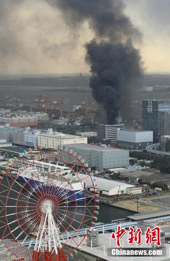 日本近海3月11日發生了強烈地震,首都東京震感強烈。日本氣象廳隨即發布了海嘯警報,稱地震將引發約6米高海嘯。圖為東京市內一建筑物發生火災。