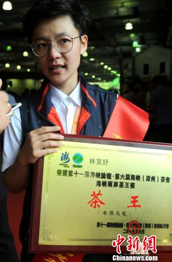 來自臺灣大 茶廠的林宣妤獲得本次茶王賽(凍頂烏龍)茶王!埥鸫 攝