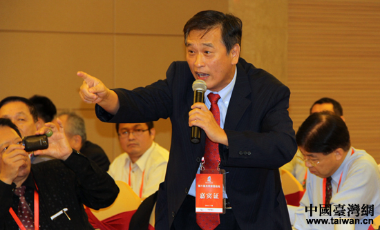 馮定國暢談自己對于兩岸共同家園建設(shè)的思考與建議,引來兩岸嘉賓滿堂喝彩。(中國臺灣網(wǎng) 王思羽 攝)