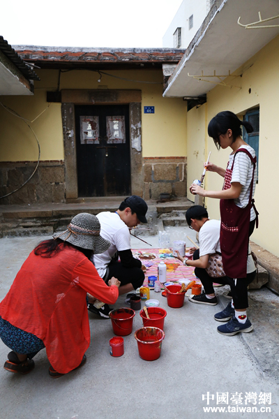 選手們調制顏料(中國臺灣網 袁楚 攝)