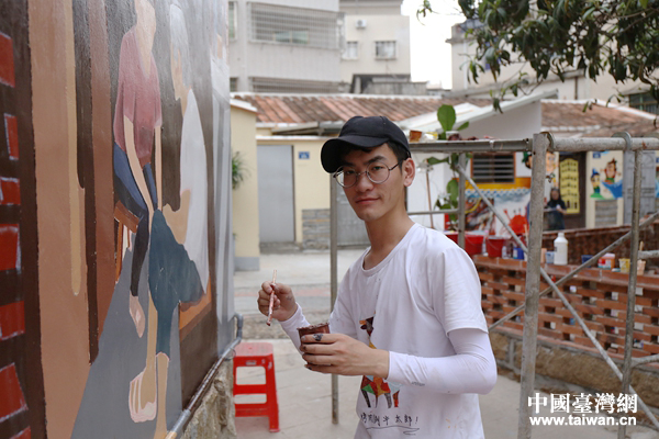 中國臺灣網6月6日廈門訊 (記者 袁楚)作為第十屆海峽論壇交流活動之一,“打破界限”兩岸創意涂鴉大賽作品決賽階段正在廈門市集美區如火如荼地進行。大賽以極具個性的涂鴉為活動內容,通過抽簽的方式將兩岸的參賽選手交叉分組,合作完成決賽作品,讓兩岸藝術家在創作中深入合作互動,同時促進兩岸青年交流。來自兩岸的青年藝術家們不懼夏日炎熱,潛心創作,目前涂鴉作品已初具規模。