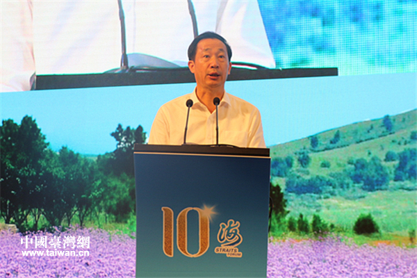 中國臺灣網(wǎng)6月6日廈門訊(記者 趙苗青)6月5日上午,由海峽兩岸農(nóng)業(yè)交流協(xié)會、福建省農(nóng)業(yè)廳主辦的第十屆海峽論壇·兩岸特色鄉(xiāng)鎮(zhèn)交流暨促進“雙新雙創(chuàng)”發(fā)展對接會在廈門舉行,兩岸業(yè)界領(lǐng)導(dǎo)、嘉賓和對接企業(yè)的代表等350余人參加活動。現(xiàn)場成功簽約15對合作項目。福建省政府副省長李德金、農(nóng)業(yè)農(nóng)村部總農(nóng)藝師馬愛國、臺灣自然資源保育技術(shù)服務(wù)基金會董事長陳志清等出席對接會并致辭。