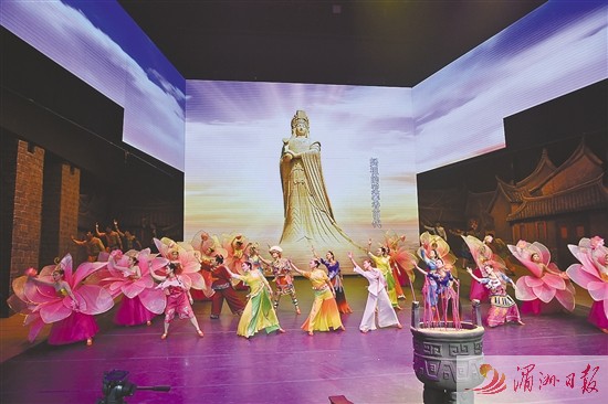 當(dāng)日上午,近一個(gè)小時(shí)的演出,涵蓋了莆仙戲、俚歌、歌舞等,匯聚了莆田文化的精髓。第一個(gè)節(jié)目是歌舞《千秋媽祖》,演繹了媽祖一生的傳奇。俚歌說唱《最美是湄洲》,把媽祖故鄉(xiāng)湄洲島以說唱的形式詳細(xì)介紹給來自臺灣的朋友;莆仙戲《海神媽祖》,向客人展示了莆田獨(dú)具特色的戲種“宋元南戲活化石”莆仙戲情韻;舞蹈《媽祖祭典樂舞》,精巧地展現(xiàn)了“初獻(xiàn)、亞獻(xiàn)、終獻(xiàn)”的三獻(xiàn)儀式和“迎神、送神”的程式,讓兩岸媽祖信眾一起來感受媽祖祭典的魅力。