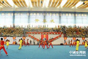 20日下午,海峽兩岸大學生職業技能大賽暨創新成果展在歌舞《學子緣·海峽情》中拉開序幕,23所臺灣科技類高校和36所大陸應用型本專科高校的近千名大學生匯聚在廈門理工學院,同臺競技。