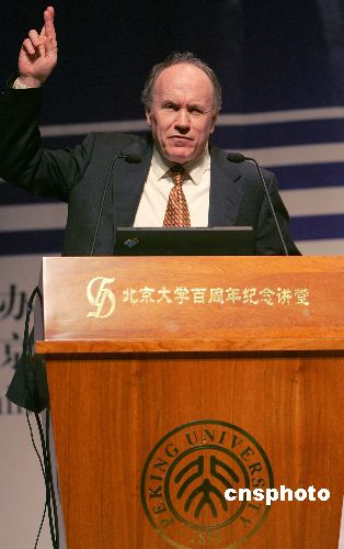 資料圖:10月31日下午,2004年諾貝爾經濟獎得主、美國亞利桑那州立大學經濟系教授愛德華.普雷斯科特(Edward C.Prescott)。 中新社發 任晨鳴 攝