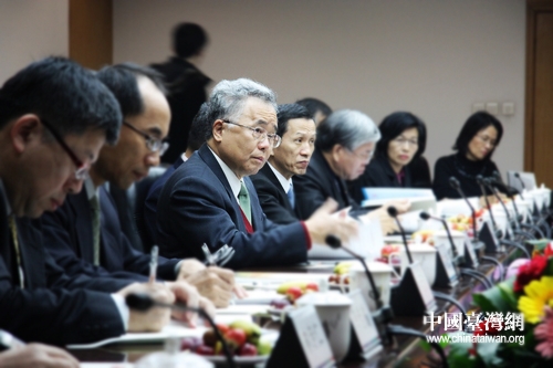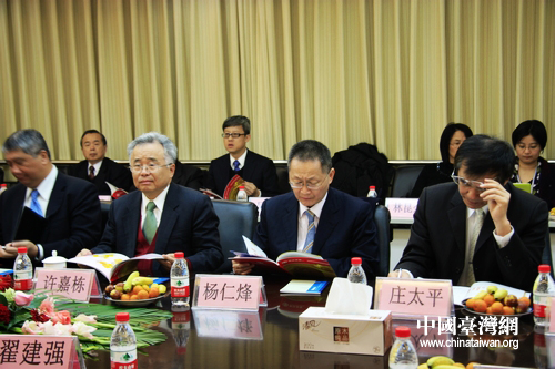 在河北銀行總部辦公室內(nèi),以許嘉棟為首的“臺(tái)灣金融團(tuán)”成員們對(duì)河北銀行充滿興趣。(中國(guó)臺(tái)灣網(wǎng) 馬迪 攝)