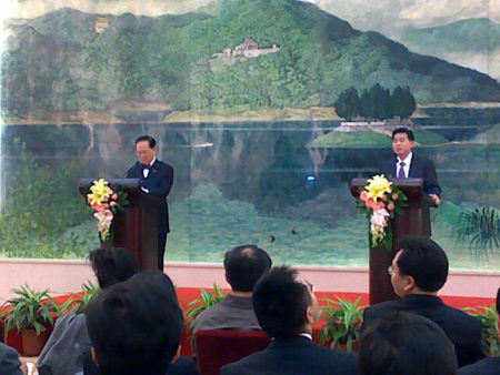 中新網4月7日電 粵港合作框架協議今天上午在北京簽定。在國家副主席習近平見證下,協議由香港特區行政長官曾蔭權及廣東省省長黃華華簽署。