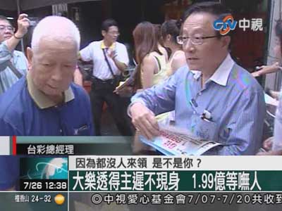 大樂透得主遲遲不領獎,臺彩總經理黃志宜還親自到高雄發傳單找人。圖片來源:臺灣“今日新聞網”