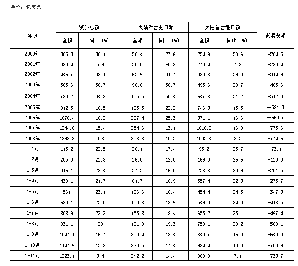 兩岸貿(mào)易統(tǒng)計(jì)表(2000年—2008年)