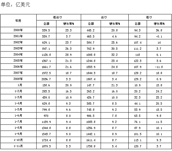 內(nèi)地與香港貿(mào)易統(tǒng)計(jì)表(2000年——2008年)