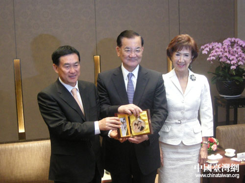 中國臺灣網5月25日臺北消息 國民黨榮譽主席連戰及夫人連方瑀24日晚會見了剛剛抵達臺北的河北省副省長楊崇勇一行。