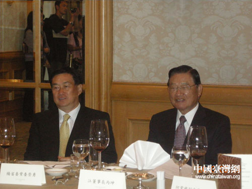 江丙坤在致辭中充分肯定近年來兩岸關系所取得的突破性進展。江丙坤說,前不久,兩會簽署了臺北與上海虹橋和石家莊的直航協議,這將為兩岸文化經貿交流注入新的活力。兩岸同祖同文、血脈相連,大陸在土地、資源、勞動力、市場等方面優勢明顯,海基會將積極努力,為兩岸經濟合作創造更多的機會。
