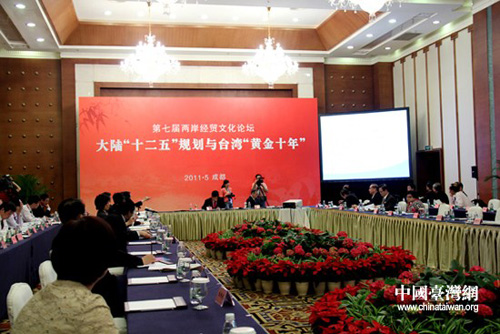 第七屆兩岸經貿文化論壇7日在成都舉行,圖為兩岸學者在“大陸‘十二五’規劃與臺灣‘黃金十年’” 專題研討會現場(中國臺灣網 李徽 攝)