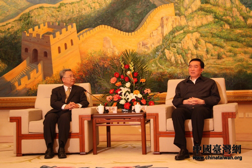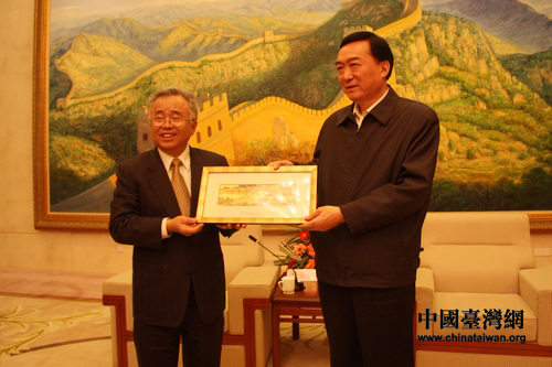 11月29日,河北省省長陳全國(右)會見臺灣金融服務(wù)業(yè)聯(lián)合會總會理事長許嘉棟為首的“臺灣金融團(tuán)”。(中國臺灣網(wǎng)記者 馬迪 攝)