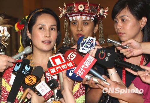 臺灣少數(shù)民族代表團高金素梅在北京飯店接受記者采訪。 中新社發(fā) 趙振清 攝