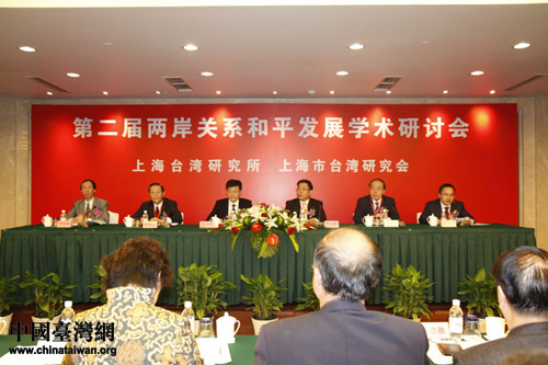 由上海臺灣研究所、上海市臺灣研究會共同主辦的第二屆兩岸關系和平發展研討會26日上午在上海召開。(中國臺灣網 李杰 攝)