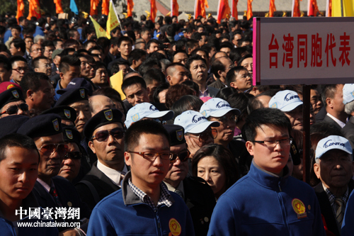 4月4日上午,壬辰年(2012)清明公祭軒轅黃帝典禮在陜西黃帝陵隆重舉行,圖為參加公祭的臺灣同胞。(中國臺灣網(wǎng) 楊麗 攝)