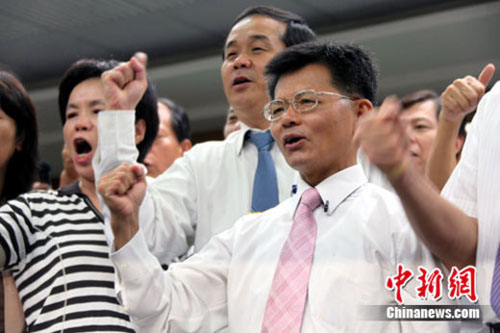 資料圖:去年8月9日,高雄縣縣長楊秋興宣布,他自行退出民進(jìn)黨,以無黨籍身份參加高雄縣市合并后的大高雄市長選舉。中新社發(fā) 劉舒凌 攝