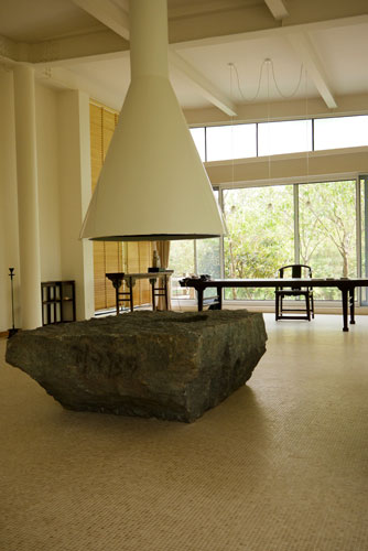 走進朱德庸工作室,首先映入眼簾的是來自武夷山大石頭所作成的暖爐。他說,當初搬運這塊大石暖爐費好一番工夫,“靠著一根根鋪在地上的鐵棍,才把石頭滾進屋里”。