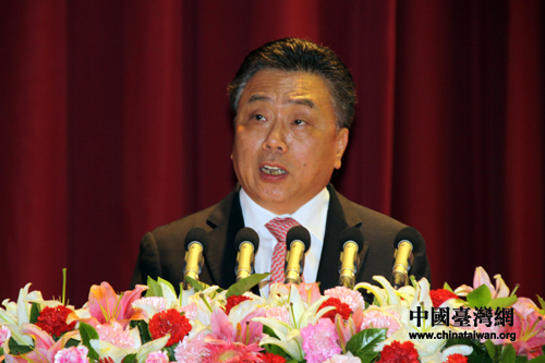 第四屆海峽兩岸“三祖文化”交流周暨第十屆冀臺經(jīng)濟合作洽談會今天下午在張家口開幕。中共中央臺辦、國務(wù)院臺辦主任王毅、海協(xié)會會長陳云林、河北省委副書記付志方以及中國國民黨副主席林豐正、全國臺企聯(lián)會長郭山輝等1200多名海峽兩岸各界人士出席開幕式。(中國臺灣網(wǎng) 王偉 攝)