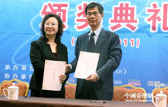 在活動現場,中國臺灣網總經理總編輯劉曉輝與臺灣亞洲大學副校長鄧成連教授簽訂了2012海峽兩岸大學生網絡商務創新應用大賽合作意向書。該意向書旨在促進兩岸大學生交流與互相了解,深化兩岸青年對大陸與臺灣商業環境、文化環境的認識,把握“海峽兩岸經濟合作框架協議”(ECFA)簽署后為兩岸帶來的機遇與挑戰,推動兩岸互聯網及其商務應用(電子商務)的發展與合作,并促進兩岸大學生的社會實踐與商業創新實踐,提升職業能力與就業力。(記者 李丹)