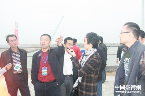 澳前組團建設指揮部負責人向采訪團介紹碼頭的建設情況。(中國臺灣網 王君飛 攝)