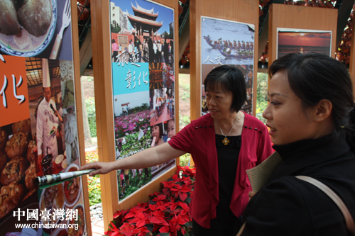 重慶和彰化之間近兩年來有不少交流,彰化縣還參與了今年在重慶舉辦的園博會。19日下午園博會一開幕,參訪團便隨著人流入園參觀。在彰化景觀區(qū),面對美食美景的宣傳海報,記者們很開心地向隨團游覽的其他人員介紹起家鄉(xiāng)的特產(chǎn)美食與自然景觀。