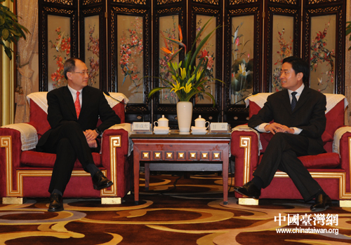 四川省副省長(zhǎng)甘霖(右)在成都會(huì)見(jiàn)臺(tái)泥集團(tuán)董事長(zhǎng)辜成允(左)。(圖片來(lái)源:四川省臺(tái)辦)