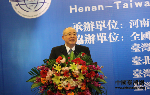吳伯雄在致辭中表示,兩岸溝通的橋梁有兩座——經濟之橋與文化之橋,“經濟合作是手牽手,文化交流是心連心”。他說,近年來豫臺兩地交流頻繁,每次河南去臺灣舉辦的活動都可以用兩個詞來形容,那就是“有實力、有誠意。”吳伯雄稱,豫臺兩地企業有著良好的互動例子,希望豫臺兩地企業繼續努力,運用智慧、技術實現共贏,讓兩地的手拉得更緊,心貼得更近。