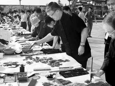 26日下午,百余名高唐書畫愛好者、各地知名書法家與臺灣畫家一起,共同書畫百米長卷,以紀念魯臺書畫交流基地啟動。臺灣客人的領隊陳進乾說,此行高唐,感覺很溫馨,一定會帶著愉快回到臺灣,也希望大陸同胞到臺灣去交流書畫藝術。高唐縣領導也表示熱誠歡迎臺灣書畫藝術家常來大陸交流。