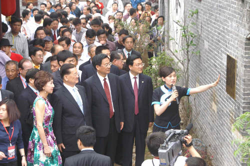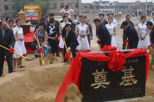 中央臺辦副主任陳元豐,海協(xié)會副會長李炳才,省委副書記、省政協(xié)主席劉偉,省委常委、宣傳部部長李群,中國國民黨榮譽主席連戰(zhàn)和夫人連方瑀等為泰和樓奠基。山東省委副書記、省政協(xié)主席劉偉在致辭中對棗莊市恢復(fù)重建臺兒莊古城工作給予了充分肯定,他說:“臺兒莊古城的重建是一件很有意義的事情,海峽兩岸交流基地的建設(shè)必將促進兩岸關(guān)系的和平發(fā)展。”中國國民黨榮譽主席連戰(zhàn)則高度評價了中共棗莊市委、棗莊市人民政府為推動兩岸交流工作所做出的努力,他希望海峽兩岸交流基地深化交流,共同合作。