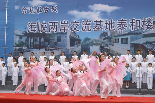 臺兒莊古城是一座二戰(zhàn)遺存最多的抗戰(zhàn)名城,被世人譽為“中華民族揚威不屈之地”。重建后的臺兒莊運河古城,將成為世界上繼華沙、龐貝、麗江之后第四座重建的古城。鑒于臺兒莊大戰(zhàn)在海內(nèi)外,特別是在廣大臺灣同胞、海外僑胞中的廣泛影響,2009年12月16日,經(jīng)國臺辦批準(zhǔn),在臺兒莊設(shè)立了國家首個海峽兩岸交流基地。為進一步推動兩岸交流,棗莊市政府在重建臺兒莊古城的同時,規(guī)劃設(shè)計了這座古城核心區(qū)的標(biāo)志性建筑泰和樓。泰和樓由海峽兩岸知名專家聯(lián)袂設(shè)計,規(guī)劃面積1000平方米,共7層,既反映歷史的漸變與對比,又凸現(xiàn)磨難與戰(zhàn)爭的痕跡,建成后將成為古城一大亮點。