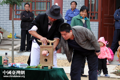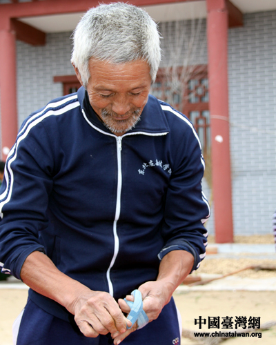 河南非物質文化傳承人、60多歲的于金升老人表演。