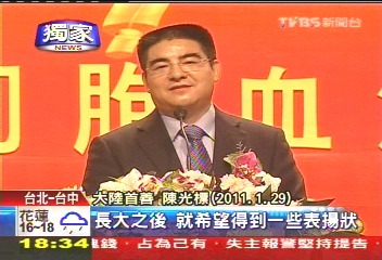 中國(guó)臺(tái)灣網(wǎng)2月15日消息 據(jù)臺(tái)灣TVBS電視臺(tái)報(bào)道,近日,臺(tái)灣一些媒體記者陸續(xù)收到兩份禮物,寄件人不是別人,正是日前赴臺(tái)行善的“大陸首善”陳光標(biāo)。據(jù)悉,陳光標(biāo)年前到臺(tái)灣發(fā)紅包,宣稱捐出5億新臺(tái)幣,一舉一動(dòng)成媒體關(guān)注焦點(diǎn)。陳光標(biāo)2月1日回大陸后,曾經(jīng)隨行采訪的臺(tái)灣記者都收到他親筆簽名的賀年卡,之后陳光標(biāo)又快遞一份榮譽(yù)證書,稱贊臺(tái)灣記者報(bào)道行善吃苦敬業(yè),特授予功德無(wú)量獎(jiǎng)。